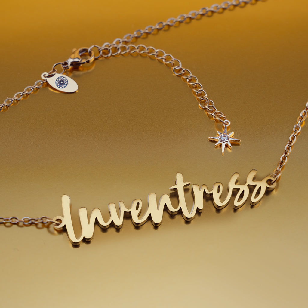 The INVENTRESS Signature Necklace is more than just an accessory—it's a bold expression of your ingenuity. Choose from the high-gloss, mirrored titanium steel gold-plated design or the sleek silver titanium steel, and live with your imagination on blast.